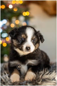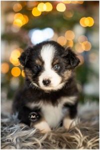 She is super smart, very confident, good mind, learns very fast and wants to please! Already learning tricks and making a statement everywhere she goes. She is now 16 weeks old (sorry, we are behind on photos) She will be SMALL. If you are looking to bring down size in your program but still want that nice “Aussie” Look.. she still has substance, with decent angles, a good head, and good length of neck and is a nice mover! She wont last much longer… she is quite the cutie!