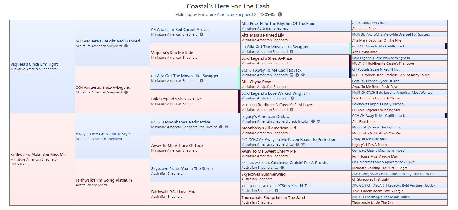 CH Coastal’s Here for the Cash is our newest Mini American Shepherd stud. Cash is on his way to his Grand in conformation with multiple majors and 3 champion defeats already. He has had 3 BEST OF BREED wins during his short show career and multiple Owner-Handler group placements.
