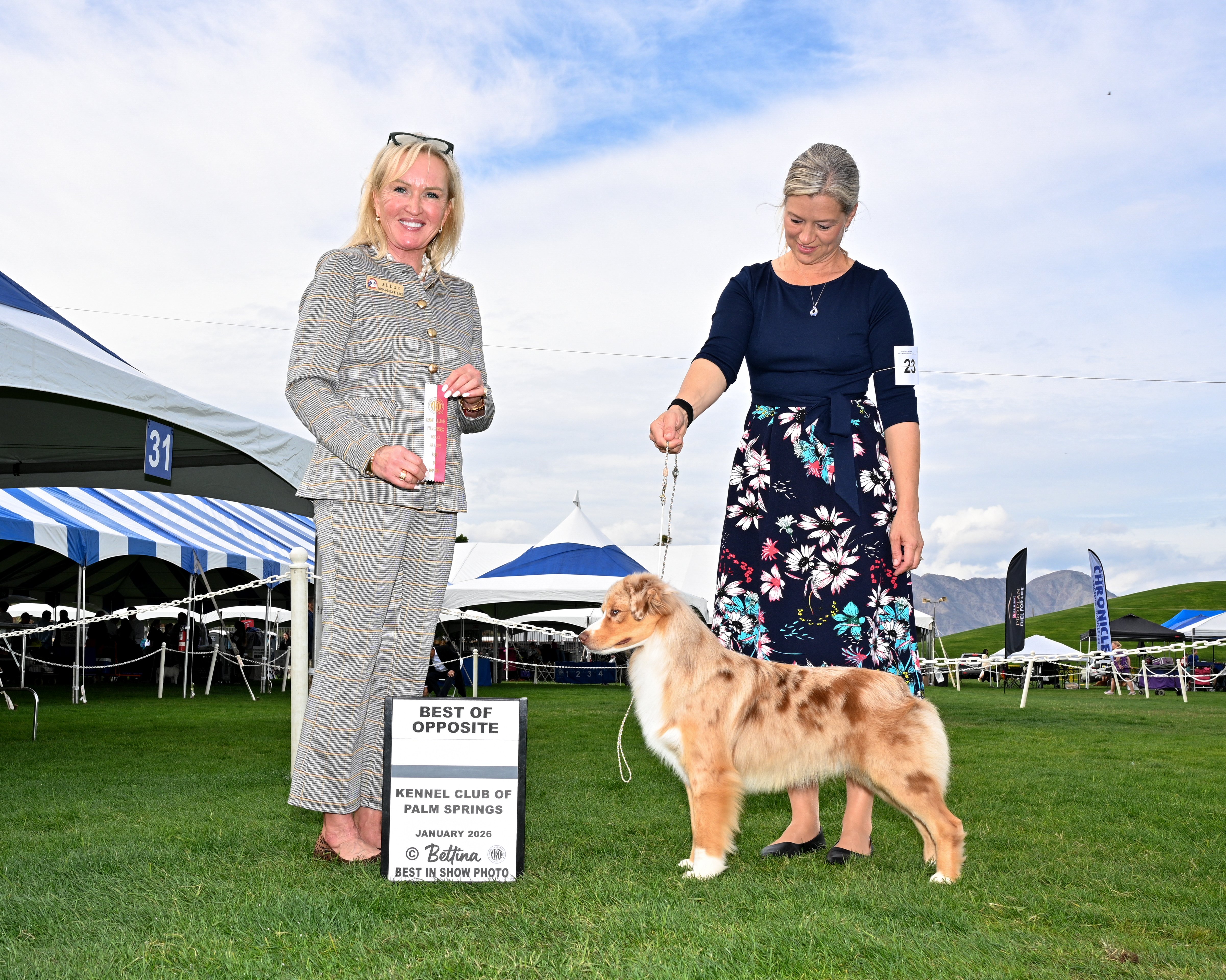 Our newest AKC Champion! Charlie earned is Puppy Of Achievement award by 1 year old. We moved him up to a special at Palm Springs and the next day he went BEST OPPOSITE SEX for a 5 point major earning his first champion defeat at only 12 months old! We are so proud of him! He has passed his AKC Temperament Test and will continue to earn new titles. He has so much personality and is just a joy to show and travel with. This boy has done wonderful on the road and loves to be a part of all the action. He loves everyone and is a very confident boy! He is playful, gentle and very affectionate. He is wide chested, has that gorgeous masculine head and big bone, yet still has beautiful movement! We can’t wait to see him fully mature and use him in our program in the near future!