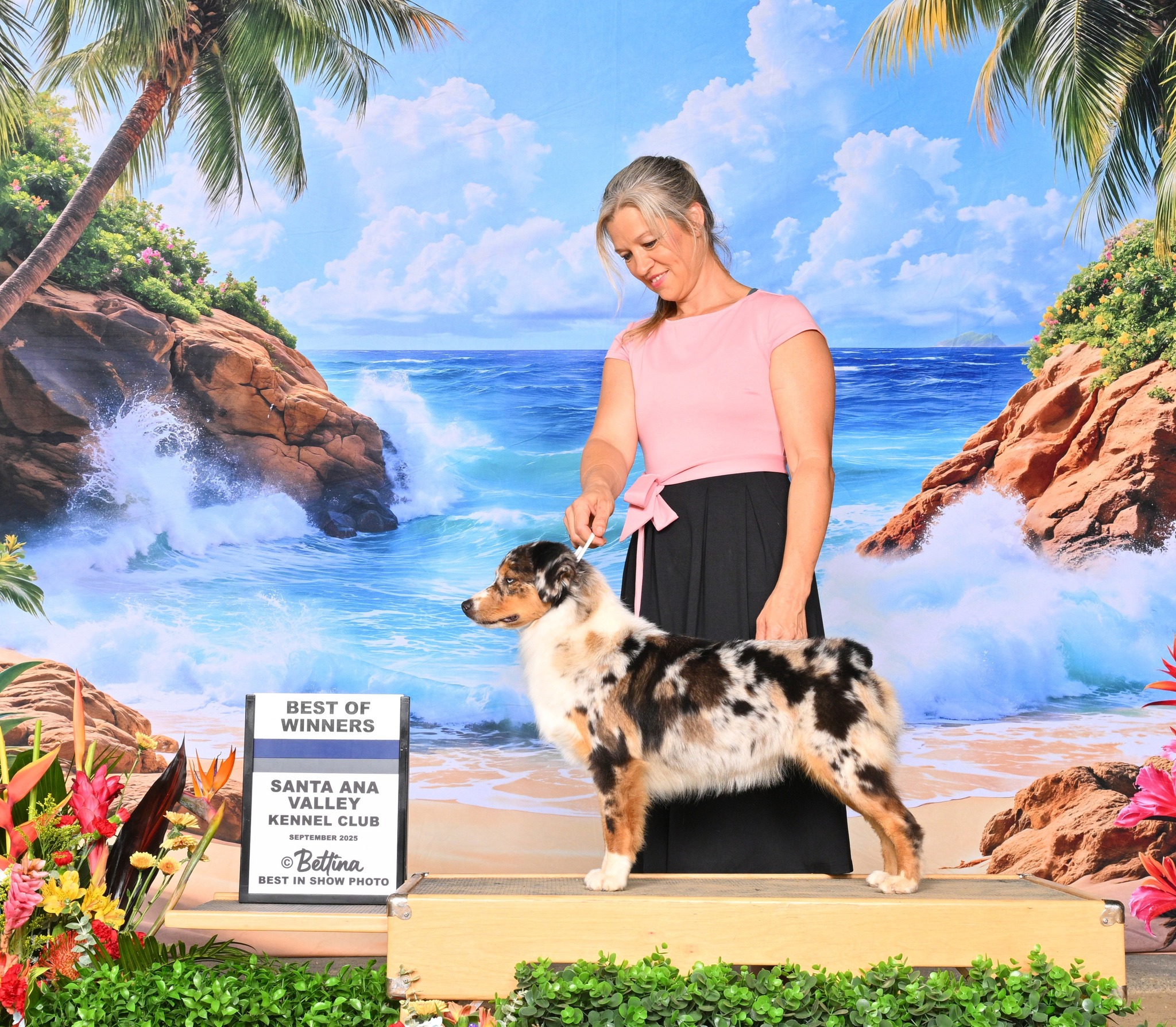 Grace is our newest addition to our program. We just started showing her in conformation. She won her first 3 point major the first time in the ring! We are so proud of her! She comes from many generations of very methodical breeding. We love her size, temperament and structure.. now we just wait to finish her health testing and hope to make her a champion very soon! More info coming…..